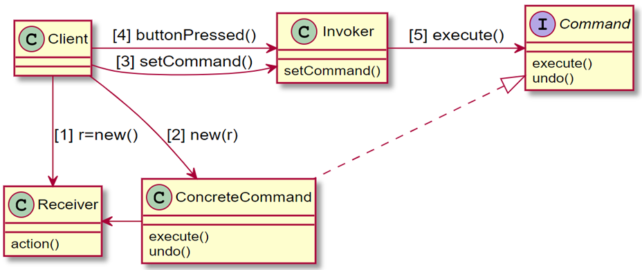 2) 명령이 객체로 캡슐화 되기 때문에 큐에 넣거나 로그로 남길 수 있고, 작업 취소(undo) 기능 구현 가능